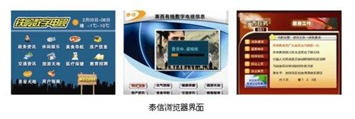 泰信瀏覽器是中國性能最高、兼容性最強的瀏覽器,支持PUSH VOD功能,可應用于文化共享工程。