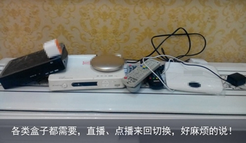 通常人們理解的網(wǎng)絡(luò)機(jī)頂盒是市面上單純的網(wǎng)絡(luò)盒子,與家中可接收有線信號(hào)的傳統(tǒng)廣電機(jī)頂盒完全不同,其擁有海量視頻、游戲等,只要接入互聯(lián)網(wǎng)即可把玩。但是想要通過(guò)網(wǎng)絡(luò)盒子接收高畫(huà)質(zhì)無(wú)緩沖的廣電有線電視信號(hào),只能通過(guò)下載安裝第三方直播軟件實(shí)現(xiàn),且用戶體驗(yàn)并不理想,經(jīng)常出現(xiàn)畫(huà)面不清晰、卡頓現(xiàn)象。所以就出現(xiàn)了家中盒子排隊(duì)排的現(xiàn)象:
