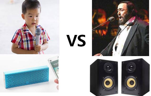 小個(gè)子的藍(lán)牙音箱與HiFi對箱比較,就像一個(gè)又矮又瘦的人,想與帕瓦羅蒂比唱功那樣,沒有任何可比性。
