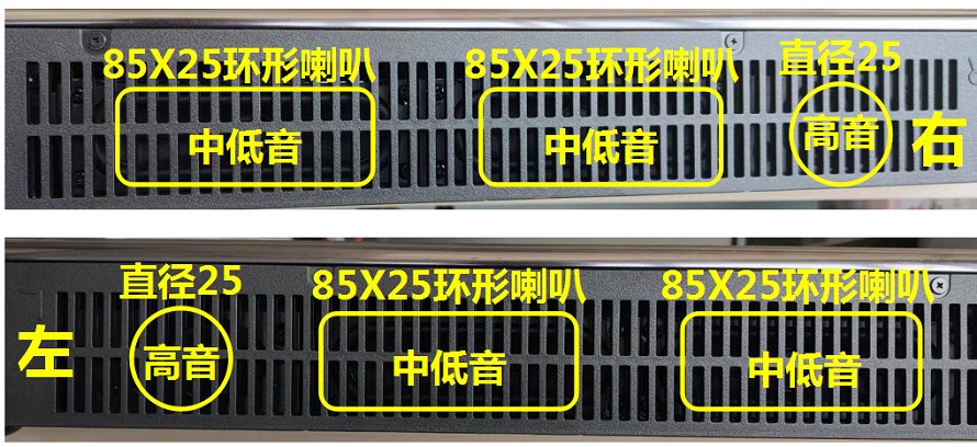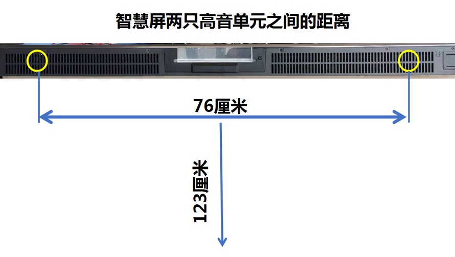 智慧屏的音箱采用了環形喇叭,紙質盆,喇叭邊是橡膠或泡沫的,高音是絲膜的,因為一體化的電視機拆卸困難,只在外部大體測量,喇叭數據見上圖,單位是毫米,音箱腔體容積廠家給的數據是1.6L