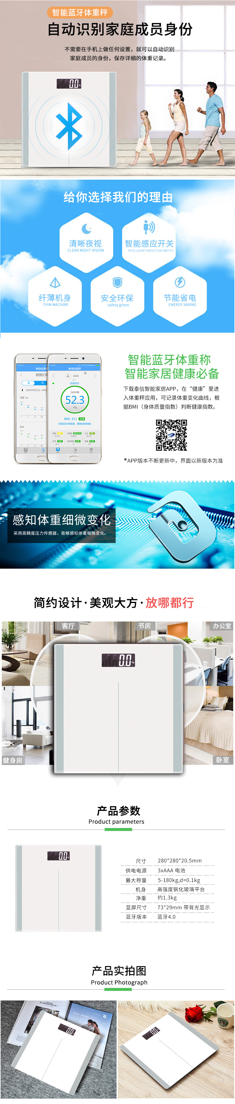智能識別家庭成員身份的智能藍(lán)牙體重秤