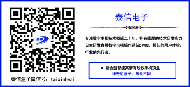 在下載CA技術(shù)領(lǐng)域耕耘十多年的泰信電子,基于下載CA技術(shù)研發(fā)出直播電視操作系統(tǒng)DTVOS,基于該系統(tǒng)可生產(chǎn)融合廣播電視及網(wǎng)絡(luò)電視的智能融合型機(jī)頂盒或電視機(jī),用戶通過(guò)一臺(tái)終端一個(gè)遙控器就可以實(shí)現(xiàn)廣播電視和網(wǎng)絡(luò)電視的無(wú)縫切換,實(shí)現(xiàn)多贏局面。
