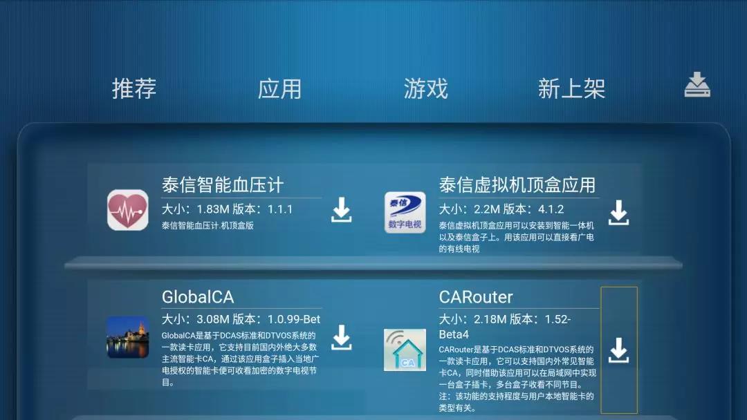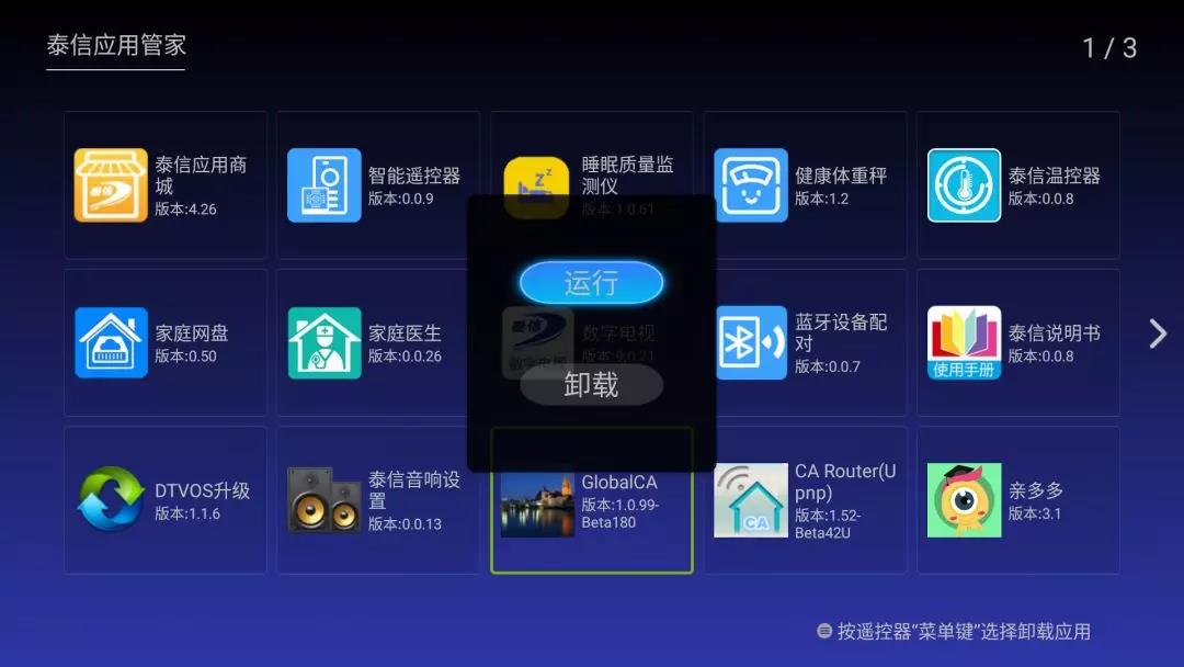 這是泰信機頂盒的底面,有一個智能卡插座,可以把廣電的智能卡插進去,但有的加密應用需要更換。具體方法是,在泰信應用管家中,找到ClobalCA軟件: